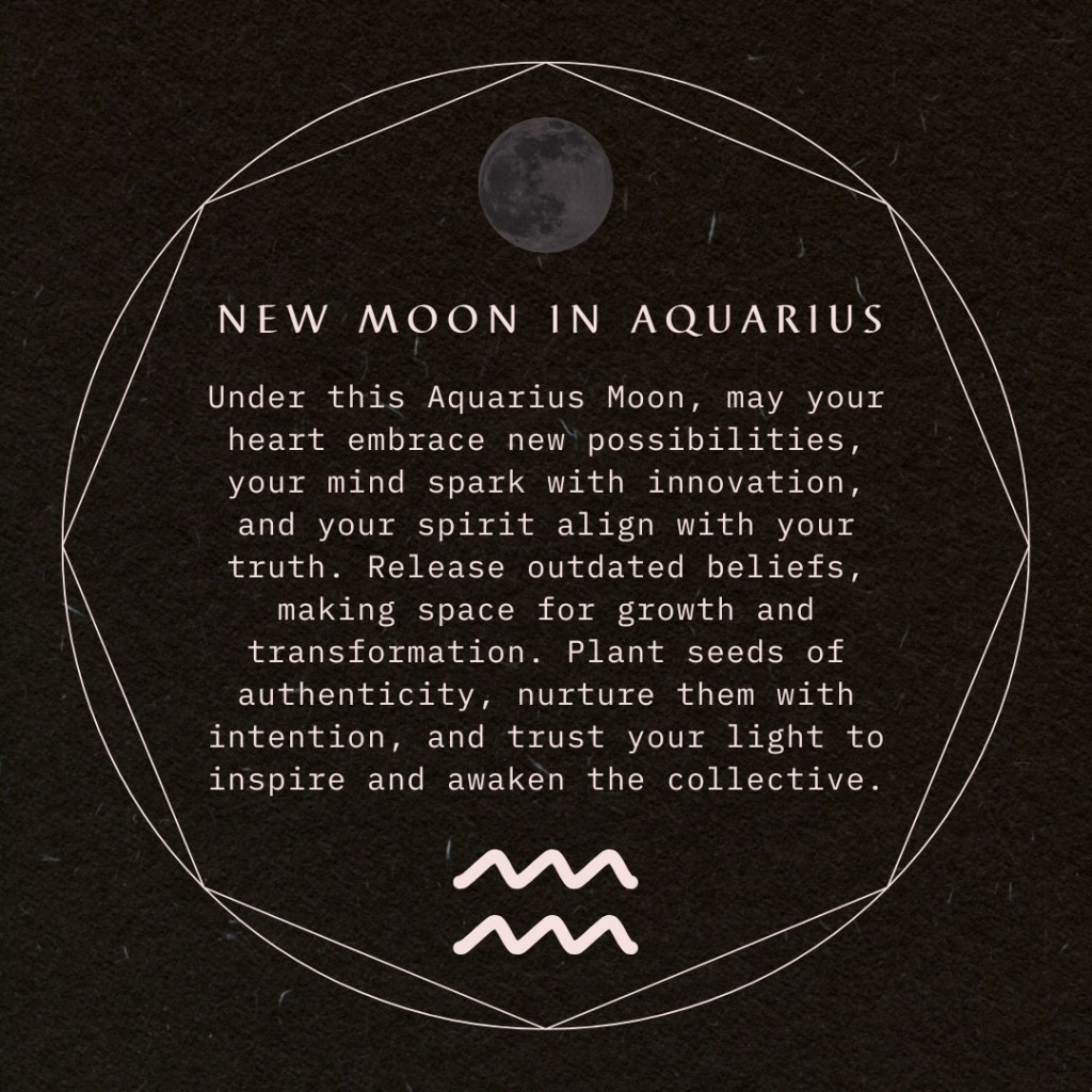 As I sit under the energy of this New Moon in Aquarius, I’m reminded that change isn’t always immediate, but it’s always in motion. The steps we take today, no matter how small, ripple outward and create the foundation for tomorrow. We each hold the power to transform not just our own lives, but the world around us—simply by embracing our true selves and stepping into our authenticity.